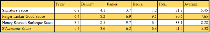 However, the publications team did not agree. Rather, Honey Roasted Barbeque was ranked number one, Finger Lickin’ Good was number two, Signature sauce came in third, and S’Awesome fourth. Tyger Callahan believed that the FLG sauce looked quite a bit like thousand island dressing and the review team unanimously agreed that Honey Roasted Barbeque, the thickest of our sauces, had an unmistakable liquid cheese look. You can view the Publication teams full ranking of the sauces below.